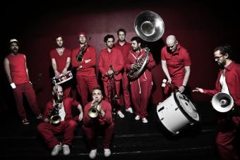 Moop Mama – „alle die den Namen nicht kennen, wir sind eine marching Band“, heißt es in einem der Songs auf ihrem sensationellen Debütalbum „Deine Mutter“. Und wirklich: Zehn Leute, sieben Bläser, zwei Schlagzeuger und ein Sänger sind auf dem Weg mit ihrer absolut neuartigen Mischung aus Brass, HipHop und deutschem Rap alles über den Haufen zu laufen, was eben noch da stand und „Das gibt‘s doch gar nicht“ gemurmelt hat. Sich der Energie dieser Band zu entziehen ist eine unlösbare Aufgabe, der selbst die einzementiertesten Vollpfosten der Rockpolizei nicht gewachsen sind.